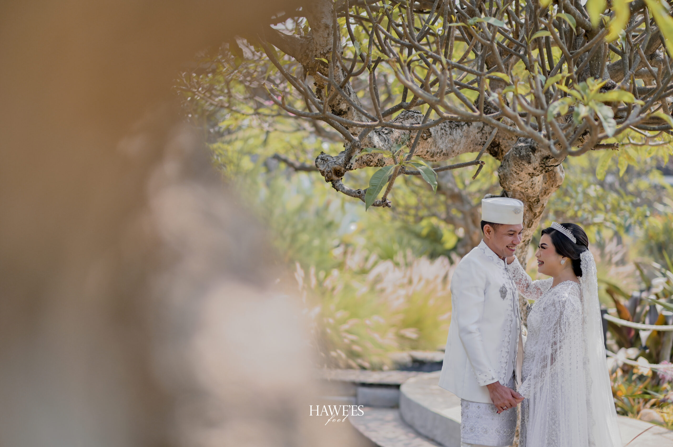 • Busana: Gaun pengantin dengan detail lace dan veil panjang. Jas pengantin pria dengan potongan klasik.